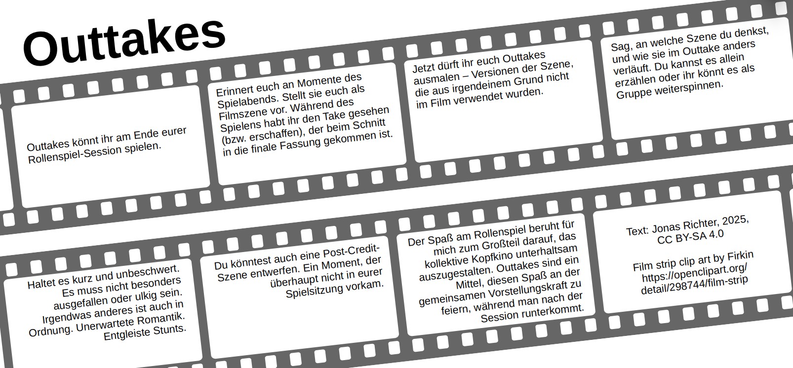 Outtakes könnt ihr am Ende eurer Rollenspiel-Session spielen.